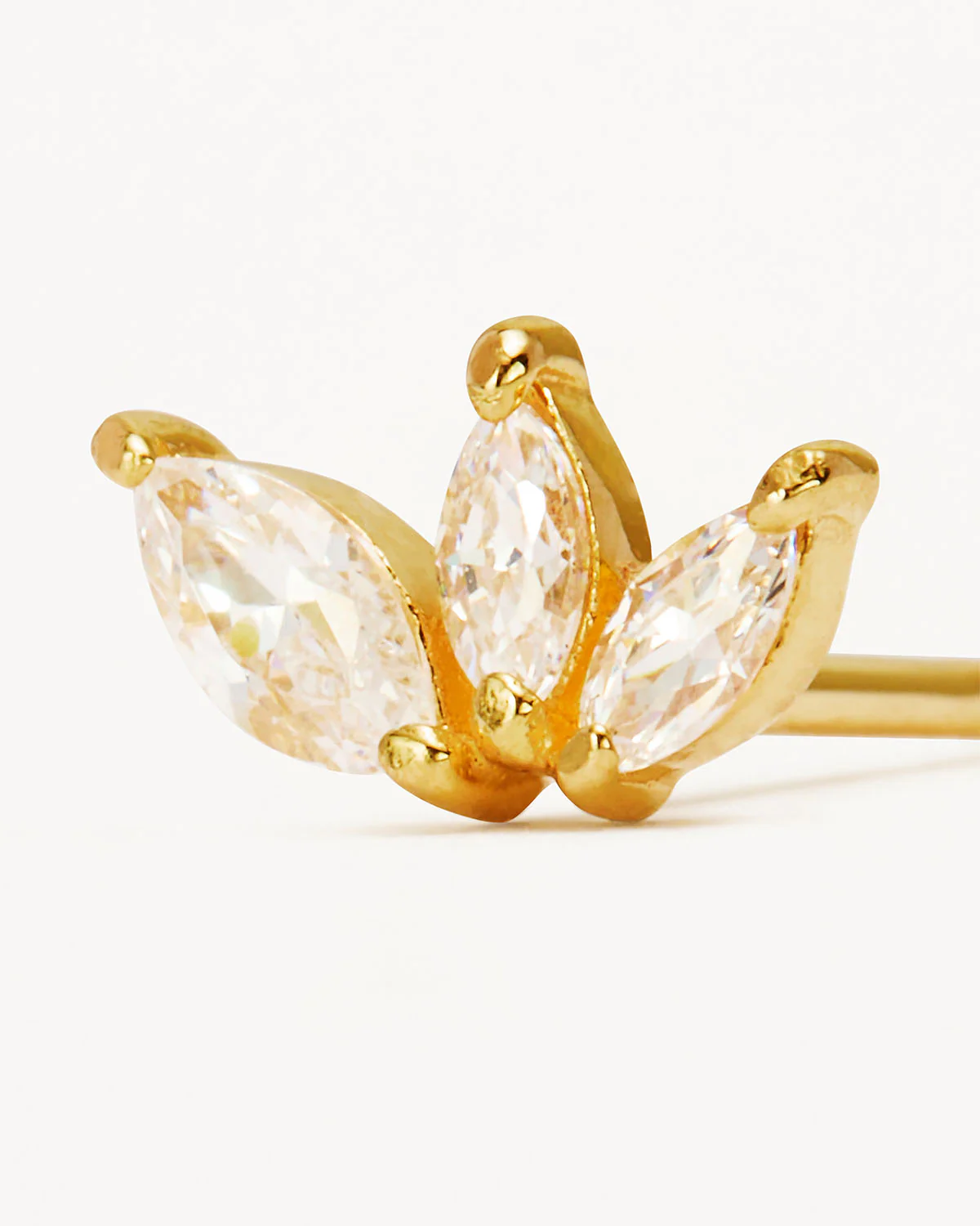 Live life in full bloom with our 14k Gold Blooming Lotus Crystal Stud Earring. A reminder of your infinite potential, this stud earring features 3 marquise CZ crystals to create a blooming lotus flowers design. Curate an intentional ear stack by layering with your favourite lotus earrings.