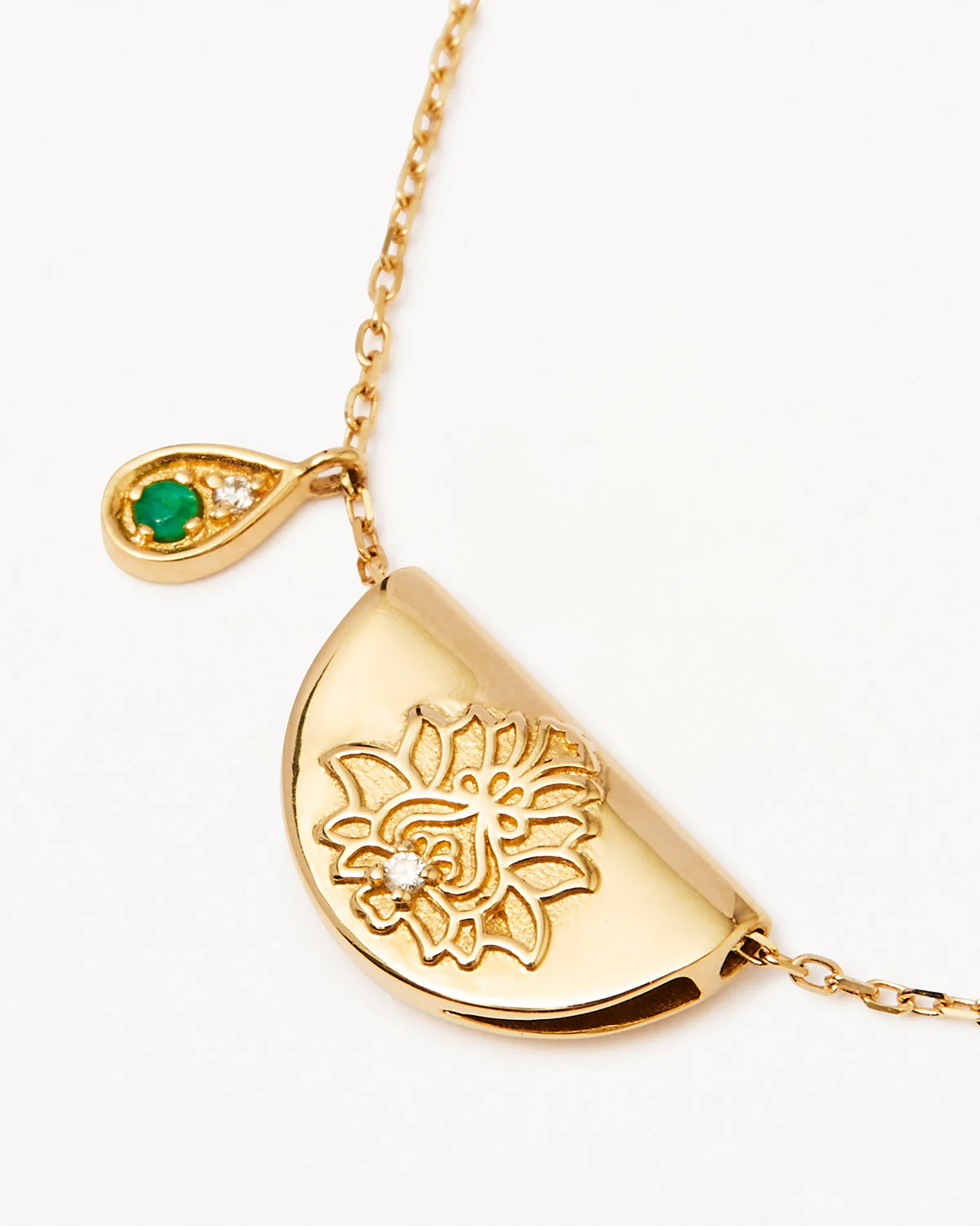 14k Solid Gold Lotus Birthstone Diamond Necklace - May - Emerald