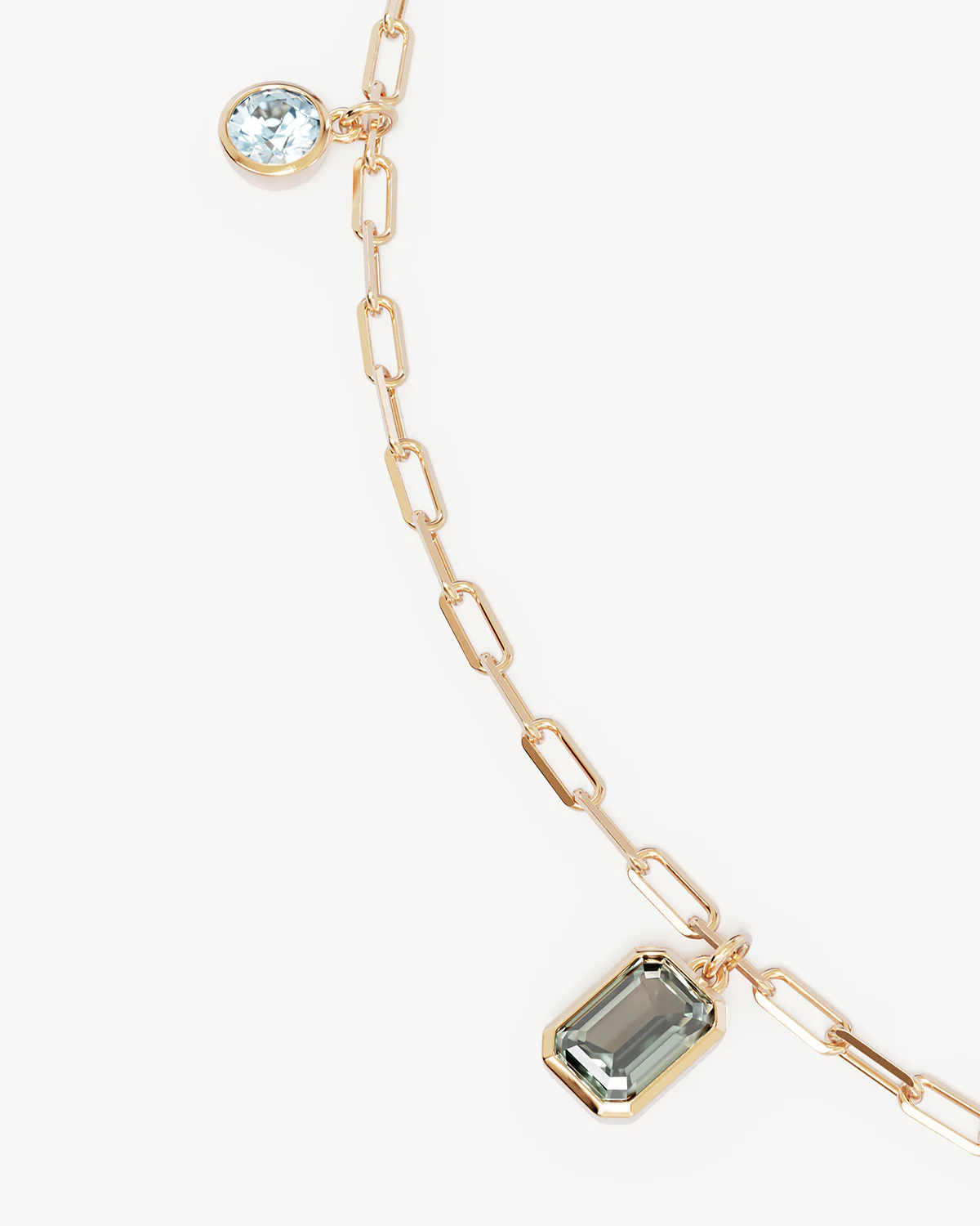 Gemstone charm choker set against a classic link chain.