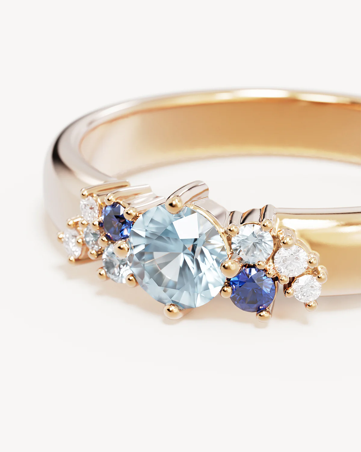 Set with white cubic zirconias and lab-grown aquamarine, sapphire and tourmaline.